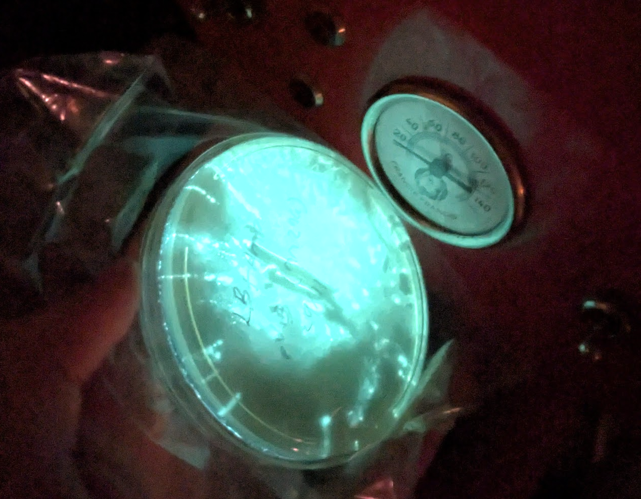 It even grow nice and glowy on my home-made agar with no antibiotic, although I don’t think that would last (update: lost its glow a day later). The strain (MM294) is super safe and de-fanged, this is something they let high-schoolers do. All in all a great way to warm up for later projects :D Details below for the curious.