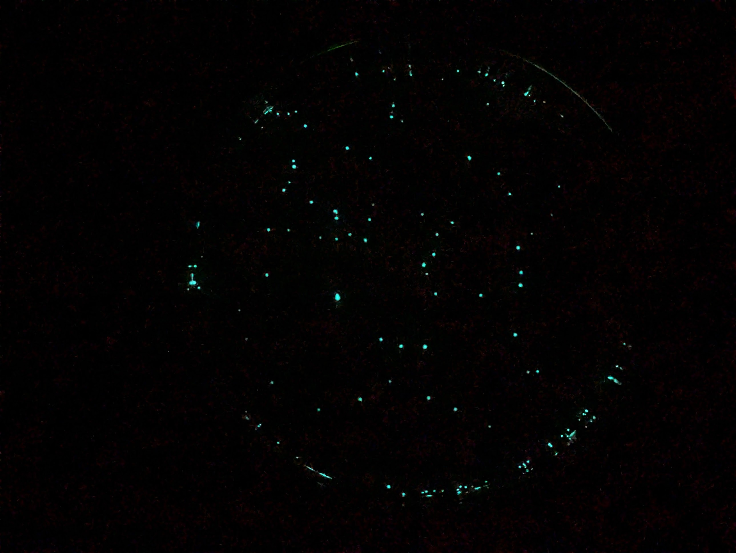 This weekend I did my first successful bacterial transformation, inserting a plasmid that makes E. coli glow in the dark by expressing the ‘lux’ genes from bioluminescent marine bacteria. I’d had no luck with a kit from the Odin (which I’ve since heard many bad reviewds about) - this time I went with an upgraded kit but also took advantage of more knowledge and tools aquired in the meantime, and it went extremely smoothly. This is sort of the ‘Hello World’ of synthetic biology, so naturally here’s my first agar art: