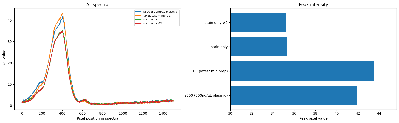 Importantly, the estimate is not 0, which is what I was really worried about :) If I wanted more precision, I’d do repeat estimates, average over multiple exposures, and make up more known reference samples. But for what I want, this is more than good enough to move on to the next steps of my project. Although I will want to do a gel to assess the quality of the DNA too - once I get my hands on a DNA ladder. At the moment we know there is DNA, but not how much is plasmid vs genomic junk that might have made it through :)