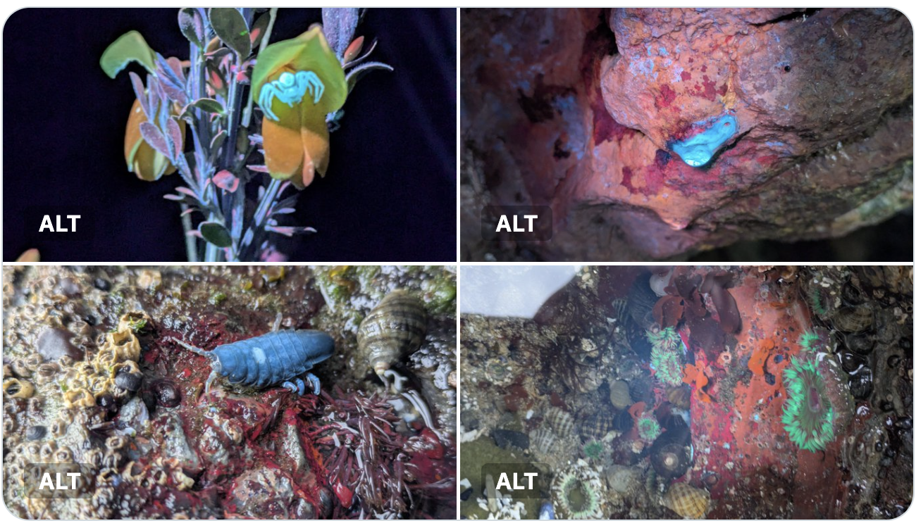 My wife and I camped out by the Oregon coast and I took some photos of things under my UV flashlight. More pics on my iNaturalist once I take em off my SD card.