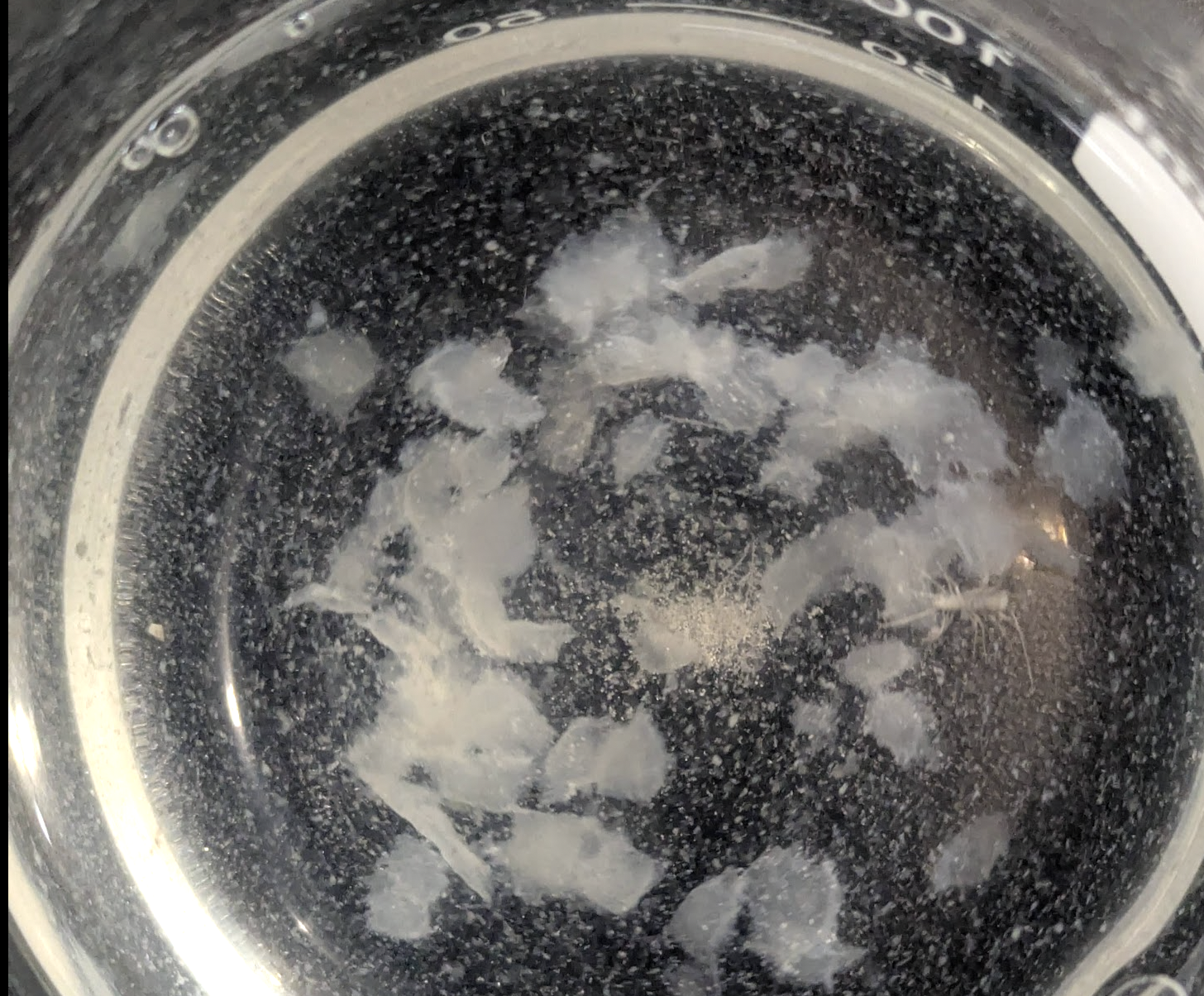 Towards the end of my duckweed experiments, I noticed some things floating in some leftover stock solution of hydroponic nutrients I had made up. White, goopy blobs about a cm long. Was this some sort of weird precipitate? Some bacteria or yeast growing in there? A look under a microscope revealed a dense, tangled, squishy mess. A few tests ruled out mineral/chemical suspects, and after a bit of poking around my best answer was that these were probably biofilm flocs: mixed environmental microbes embedded in EPS (extracellular polysaccharide). That’s an answer, but how do we narrow it down to something more specific?